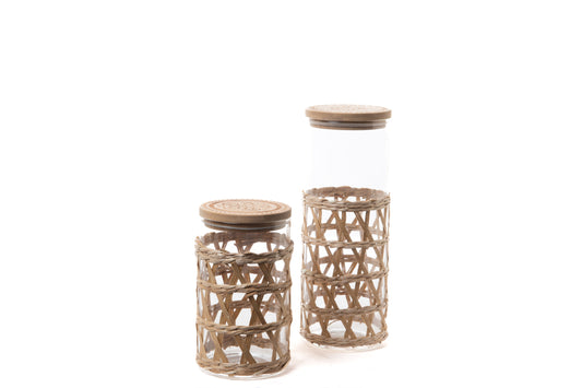 Barattolo in vetro con tappo in legno e chiusura ermetica con dettagli in rafia di Amadeus (H:: 18 / L:: 10 / P:: 10)
