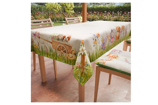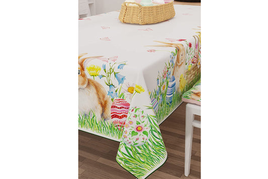 Tovaglia pasquale in microfibra Rabbit da 6 posti tavola, misura 140x180