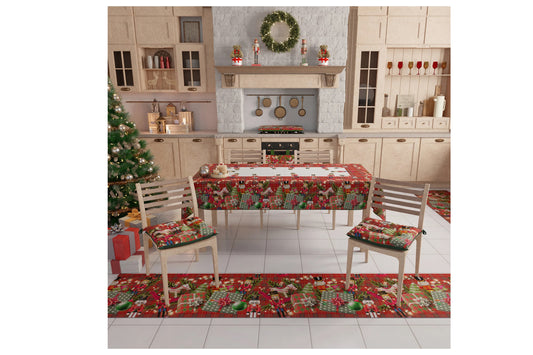 Tovaglia natalizia in microfibra con stampa digitale da sei posti tavola. Misura 140x180