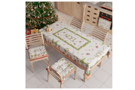 Tovaglia natalizia in microfibra e antimacchia da 6 posti tavola con stampa digitale. Misura 140x180. Noel