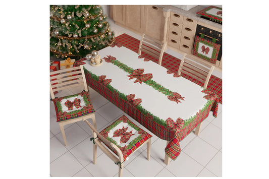 Tovaglia natalizia in microfibra e antimacchia per 12 posti tavola .Misura 140x240