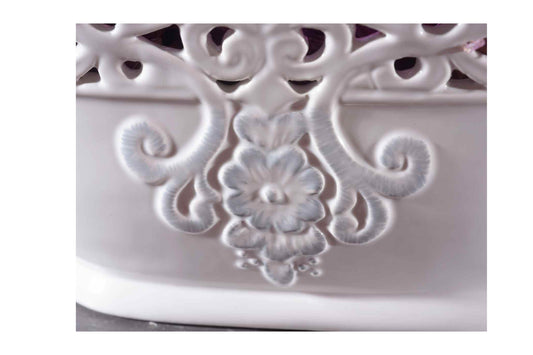 Vaso ovale in ceramica lucida con bordo decorato e rilievo. Misure: cm 24 x 13 x 10,5 H Base: 16,5 x 8,5 cm