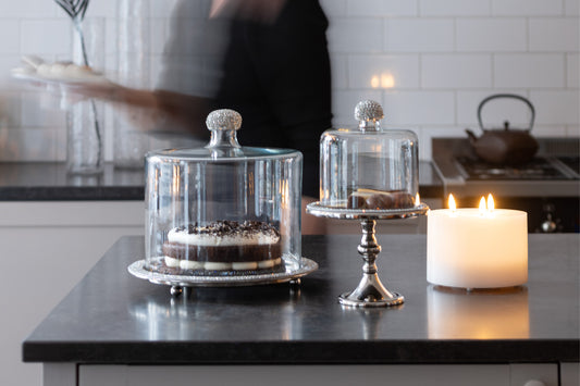 Vassoio argento con campana in vetro e brillantini bianchi (28x28x25,5) Jolipa