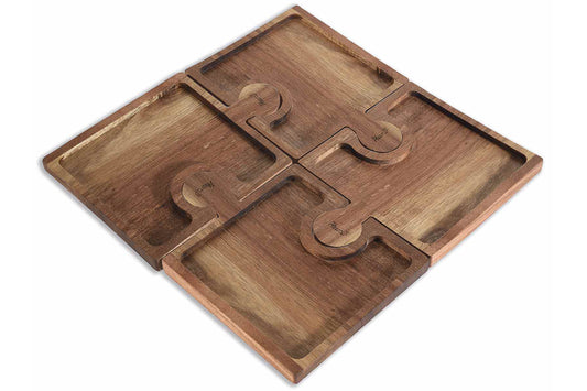 Vassoio alimentare in legno d'acacia c/portacalice a puzzle. Misure: cm 17 x 22,5 H Spessore: 1,5 cm