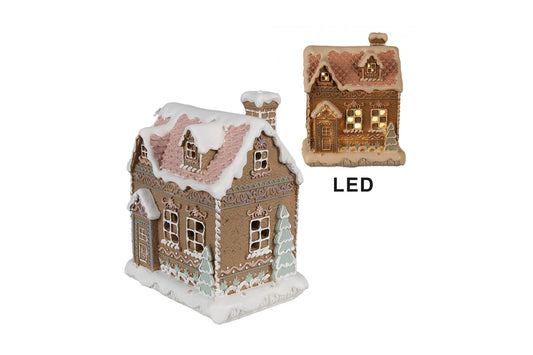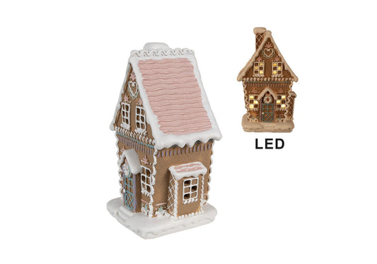 Clayre & Eef Casa di pan di zenzero con led realizzata in poliresina 13x13x15