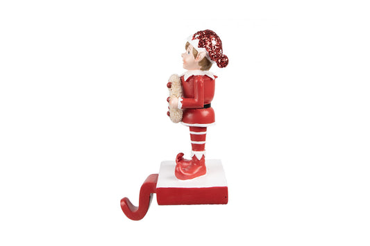 Elfo natalizio con gancio per calza realizzato in resina H 20 cm