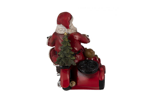 CLAYRE E EEF Decorazione Natalizia Statua Babbo Natale su moto e orso al suo fianco 19x14x17 cm