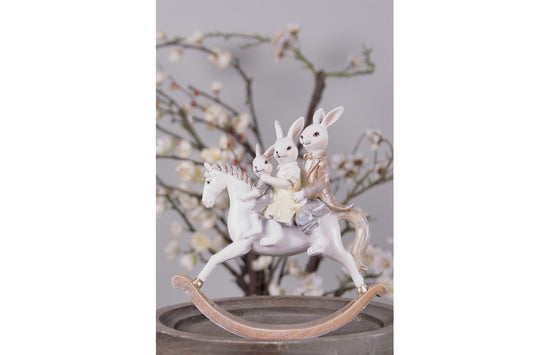 Coniglietti in resina su cavallo a dondolo (19x6x20) Clayre & Eef