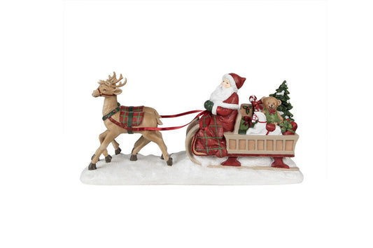 Clayre & Eef Statua decorativa natalizia Babbo Natale con slitta e regali realizzata in resina 19x11x41 cm