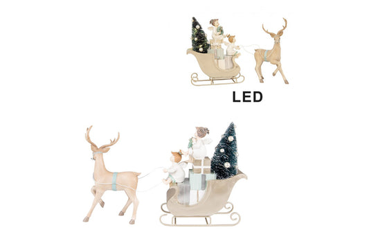 Clayre & Eef Statua decorativa natalizia Angioletti su slitta con cervo realizzata in poliresina, dotata di led, 26 cm