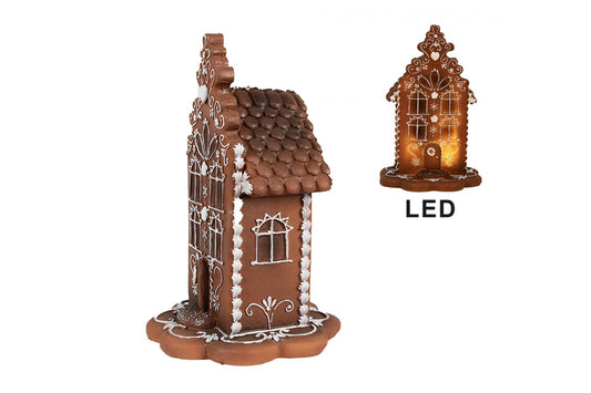Clayre & Eef Casa di pan di zenzero con led realizzata in poliresina 13x13x20 cm