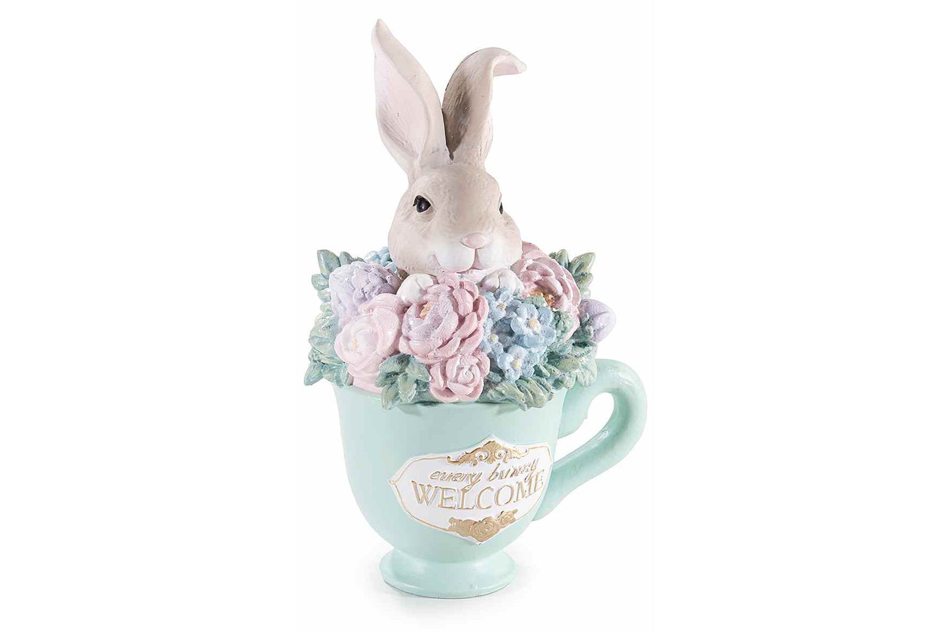 Coniglietto nella tazza in resina c/decori in rilievo Misure: cm 10,5 x 8 x 16 H