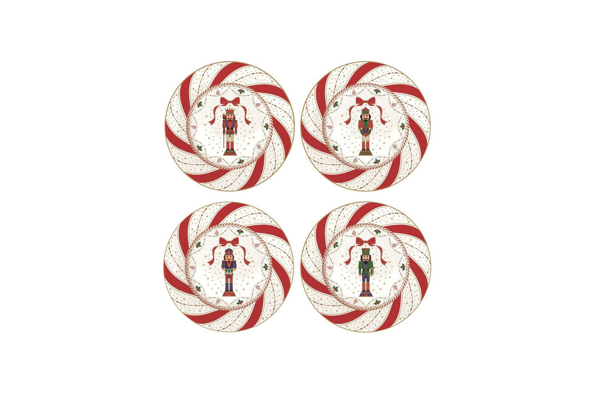 EASY LIFE Nutcracker Twist Schiaccianoci. Set 4 piatti dessert in porcellana in scatola reagalo. Diametro piatto 19 cm.