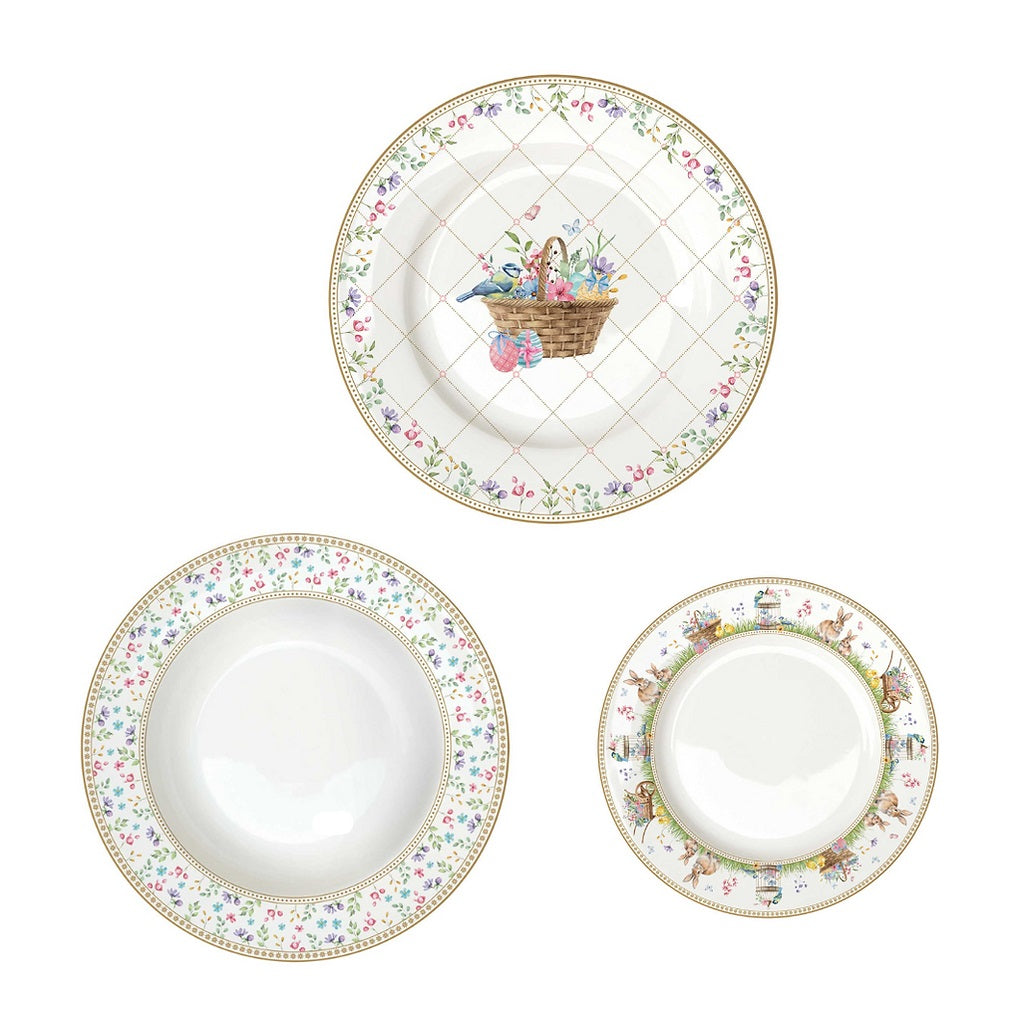 Easy Life Servizio di piatti da 18 pezzi ( 6 piani, 6 fondi, 6 frutta) Spring Bloom