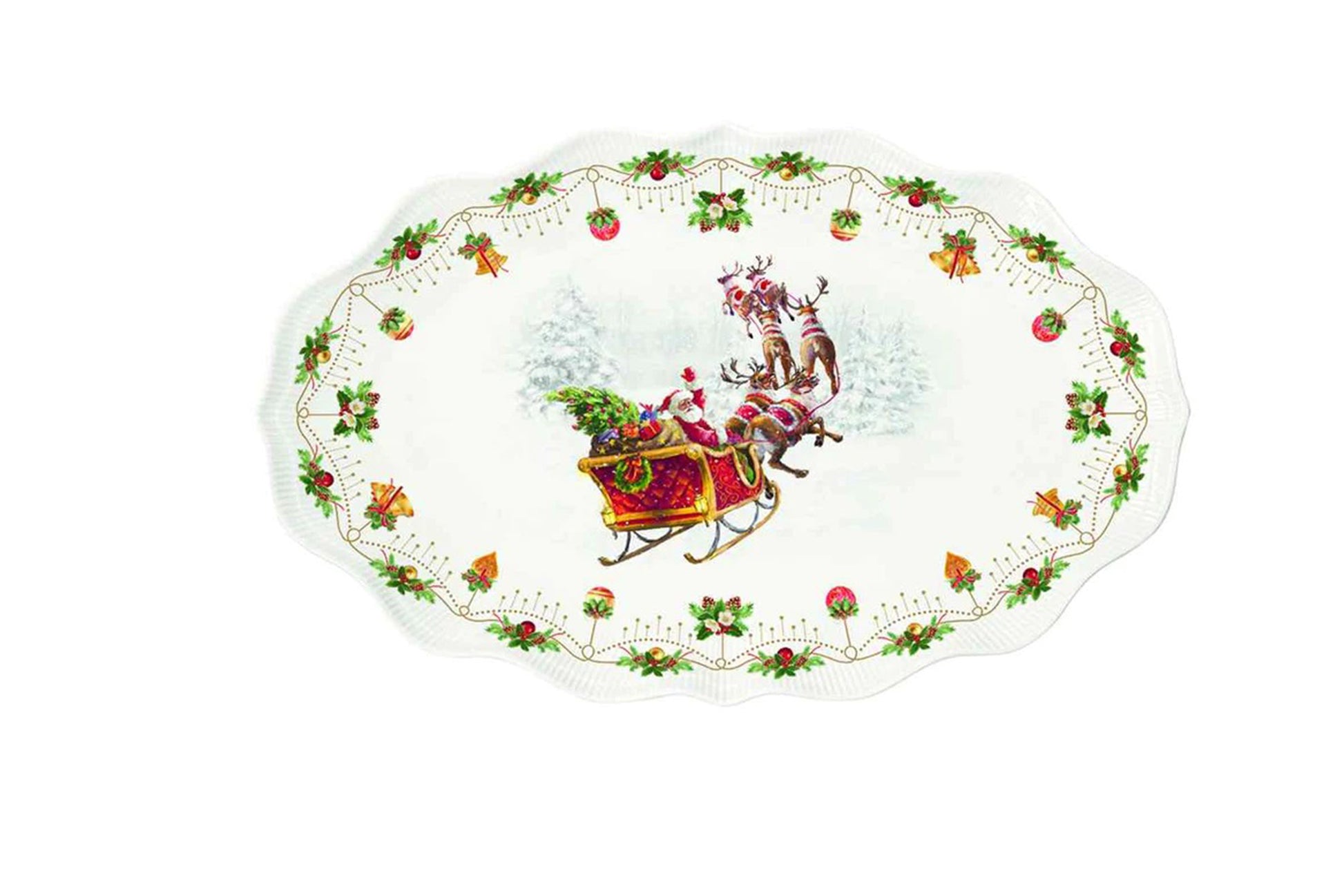 Easy Life Vassoio ovale di natale in porcellana con Babbo natale in slitta vintage "Nostalgic Christmas" 40x25,5 cm.