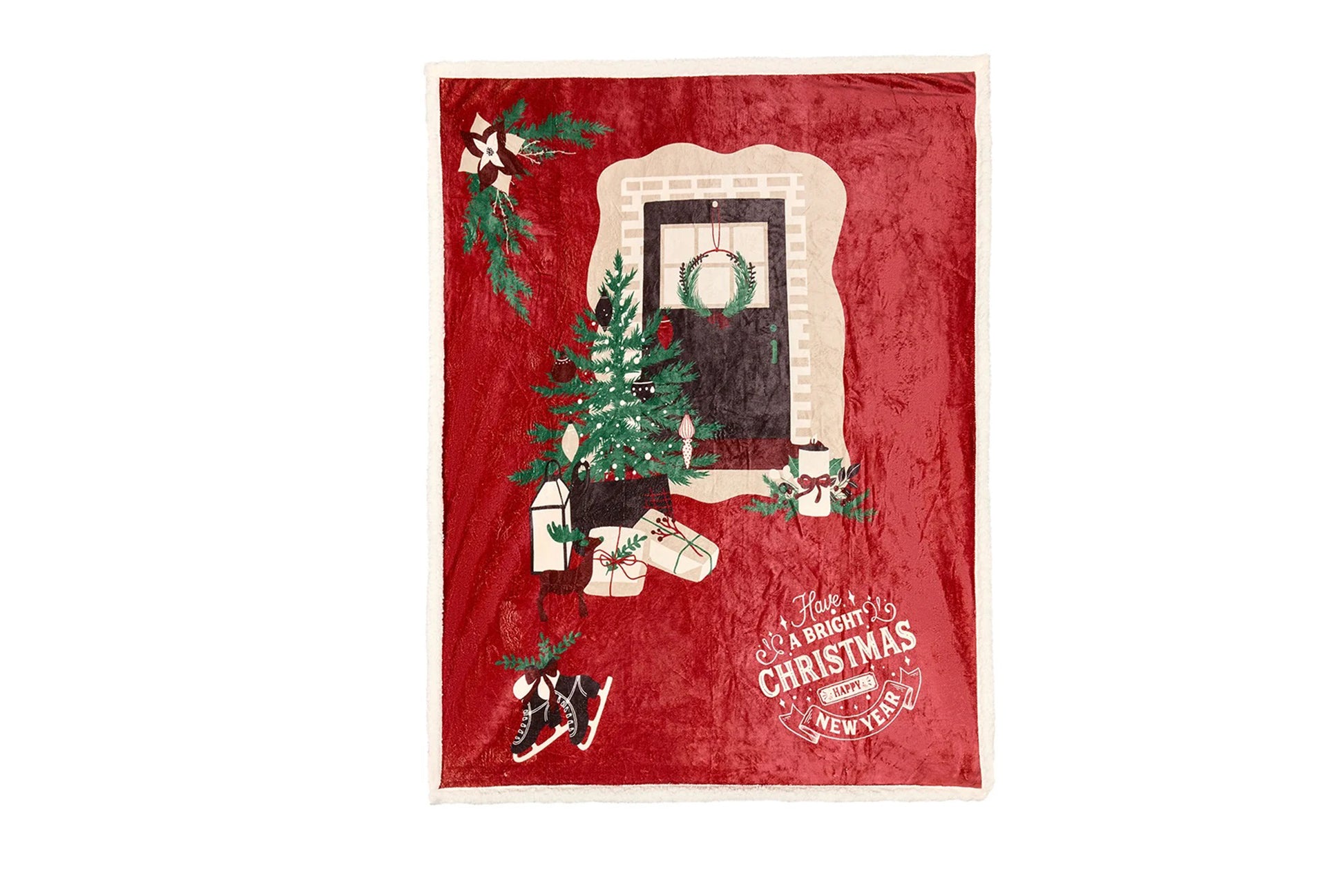 Plaid beige natalizio in pile con porta e albero natalizio 130x160