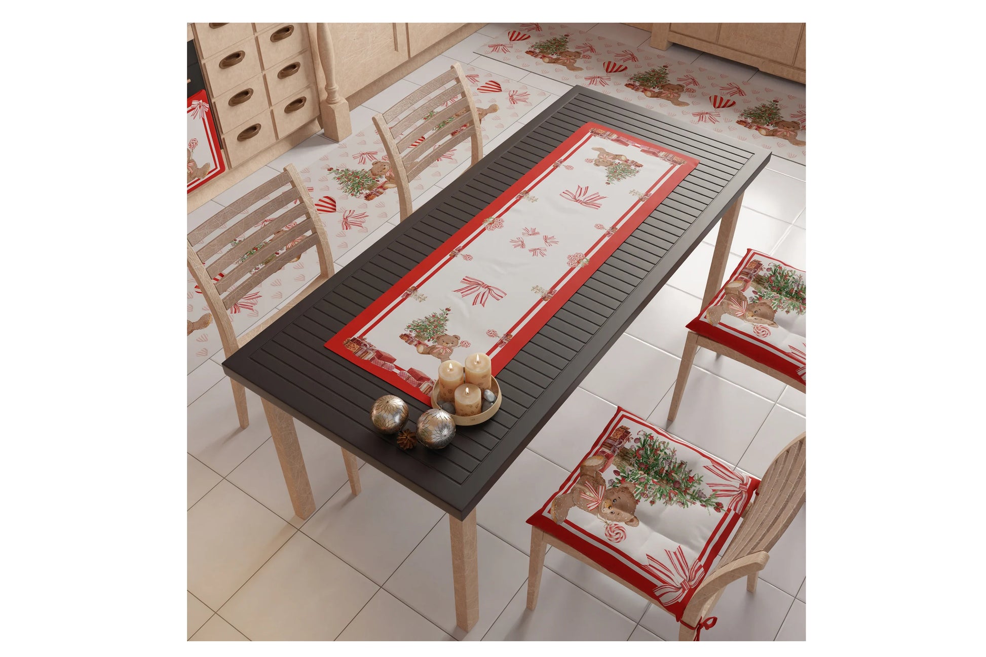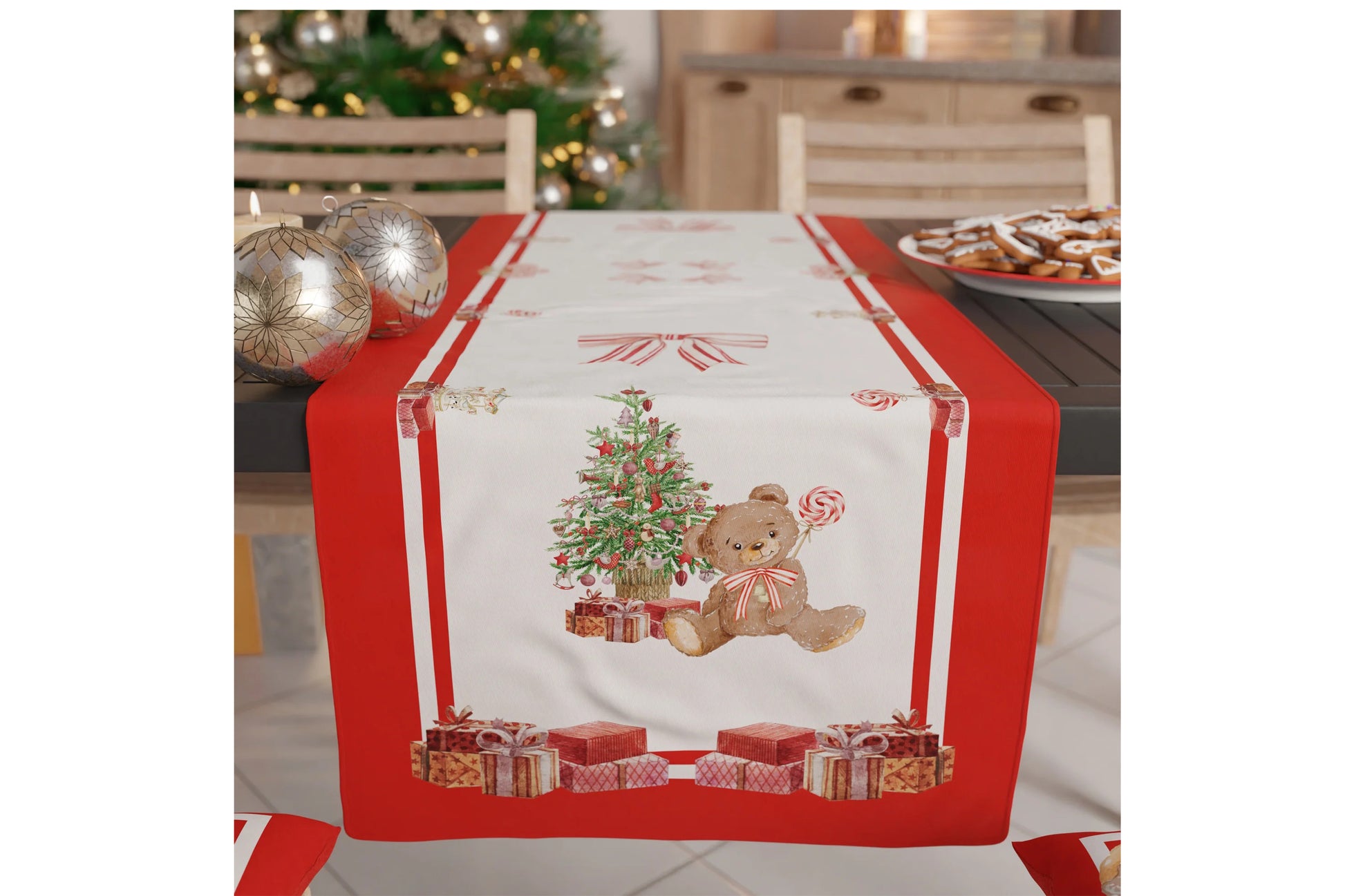 Runner natalizio antimacchia realizzato in microfibra con stampa digitale. Misura 40X140