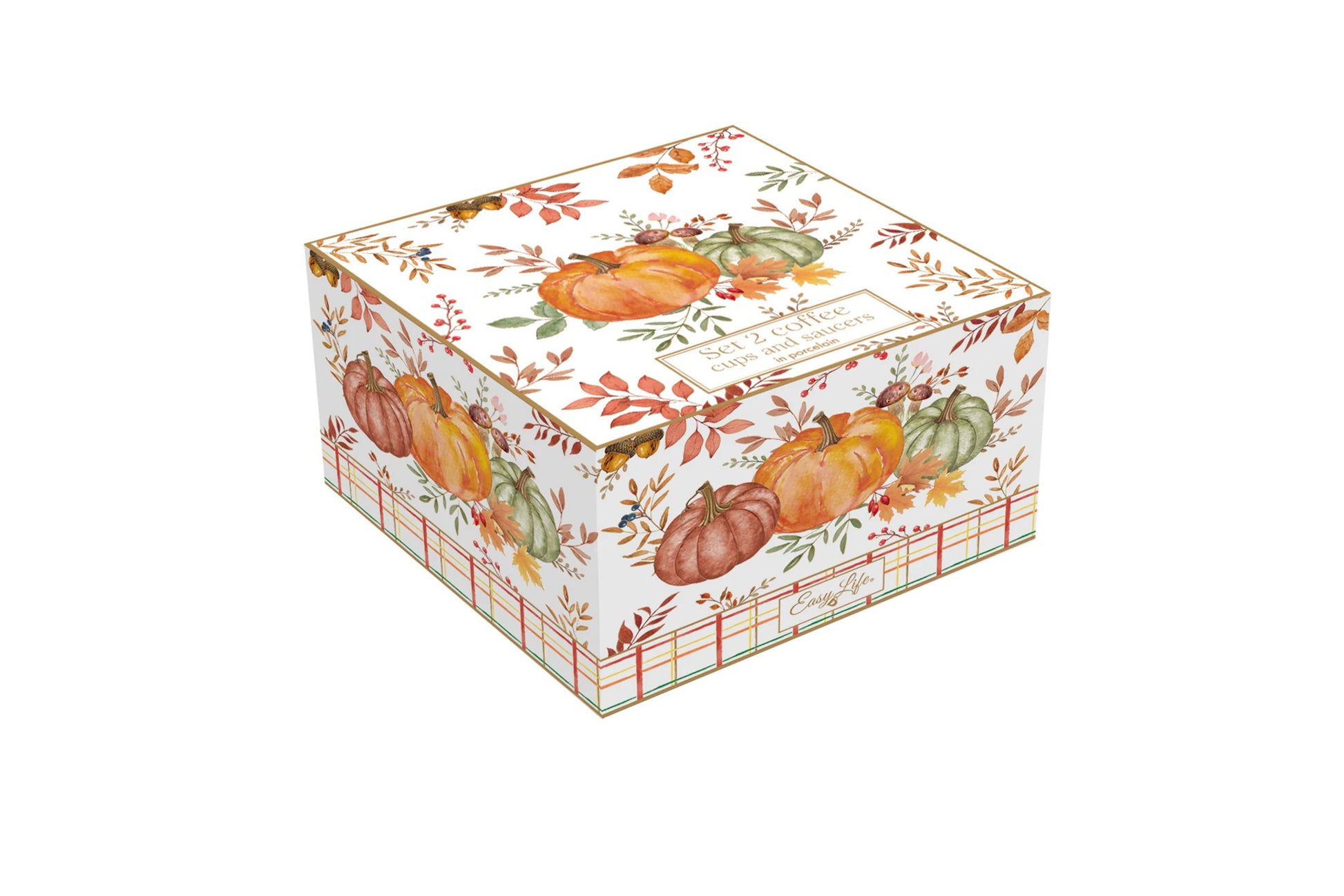 Set due tazzine da caffè espresso con piattino in porcellana. Capacità 110 ml. Linea Harvest di Easy Life
