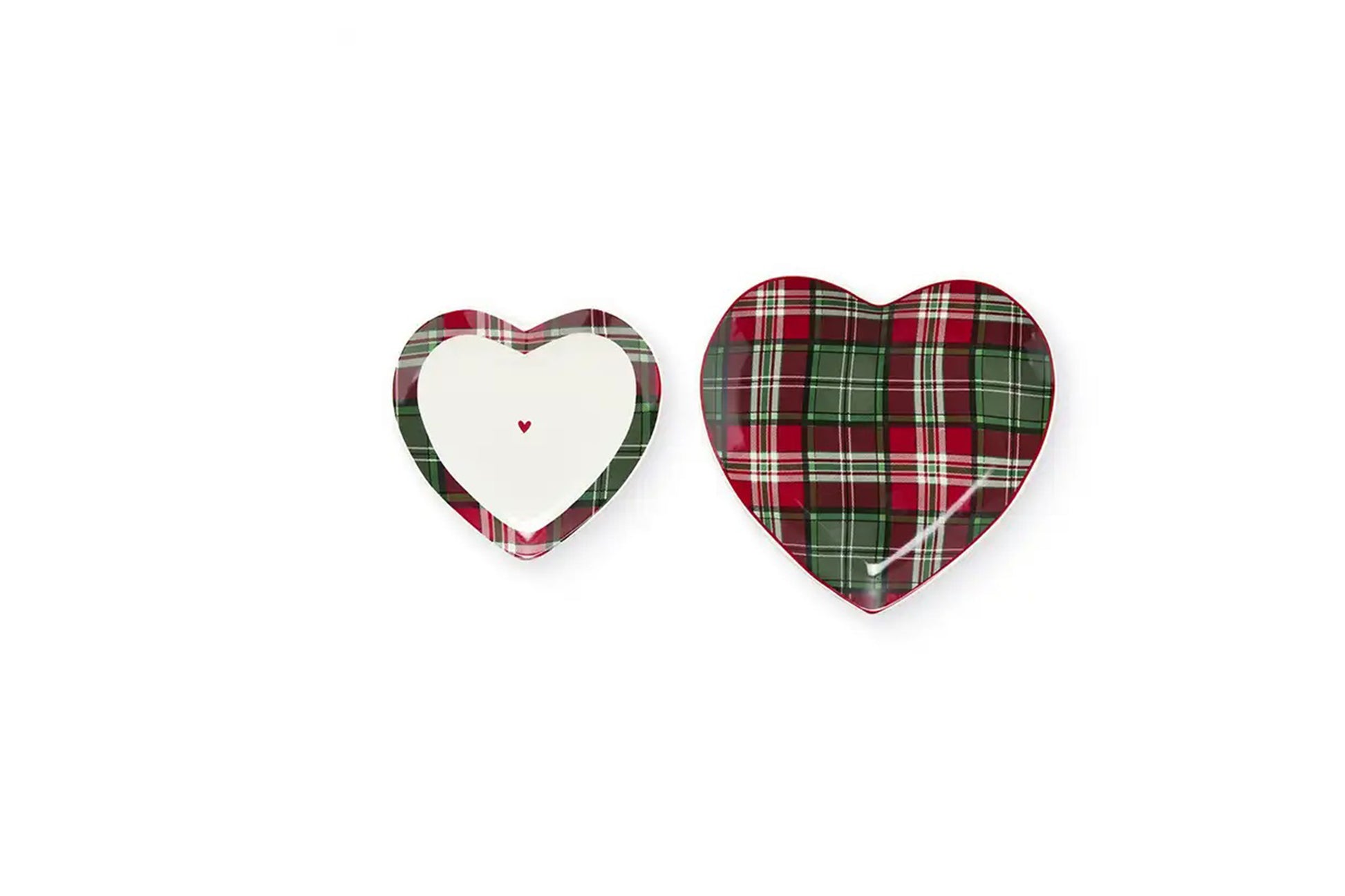 Set due vassoi /piatti di natale a forma di cuore in porcellana della linea "Queen Mary" di Nuvole di stoffa- 17x16/22x23 cm.