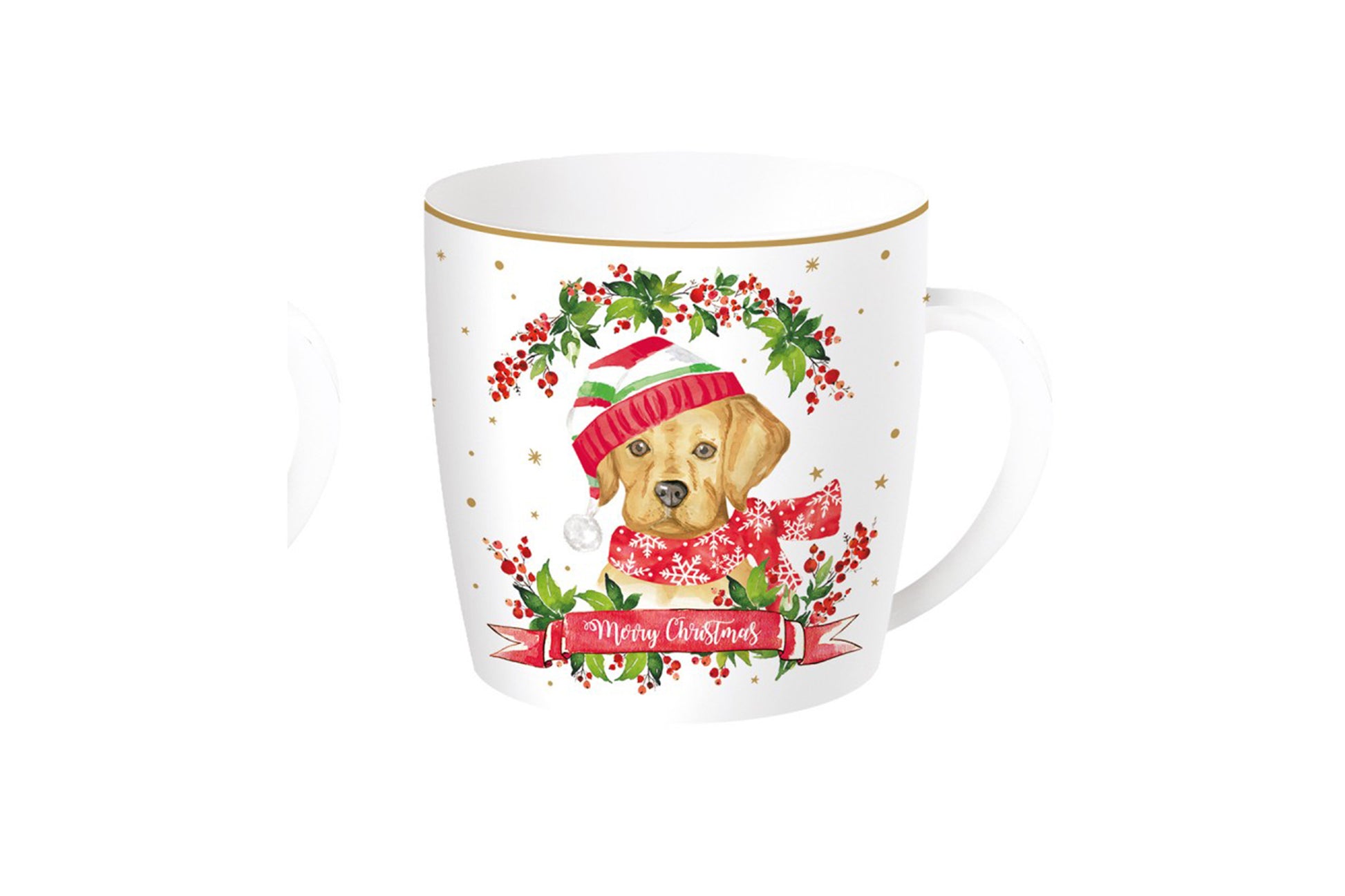 Tazza in porcellana in scatola di latta della collezione " Christmas dog" di Easy Life